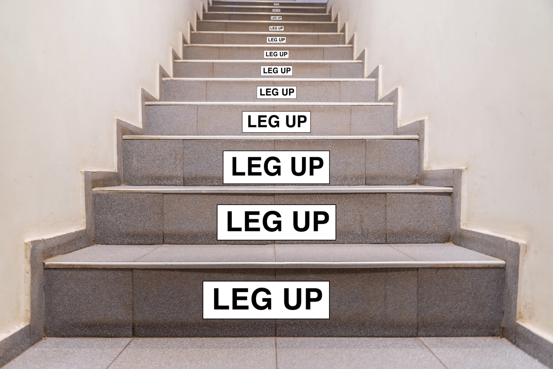 LEG UP was an installation project that used simple text to disrupt ordinary surroundings. In this piece, the words “LEG UP” were applied to each step up 15 flights of stairs in the Ansin Building of Emerson College. The project encouraged movement and awareness of one’s body while establishing a meditative rhythm as individuals climbed the stairs.